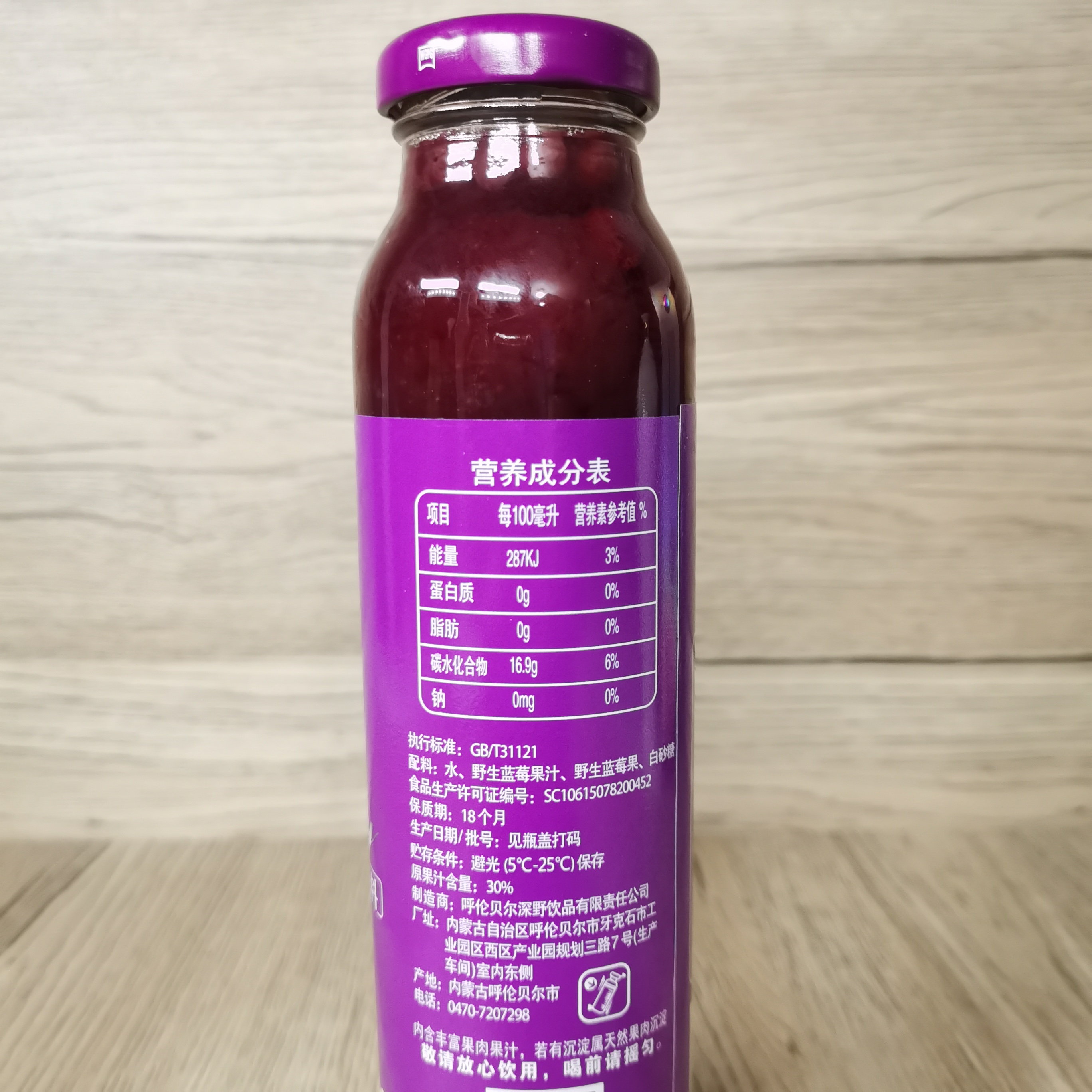 📚 牙克石深野蓝莓汁果汁果肉纯野生饮料玻璃瓶10瓶