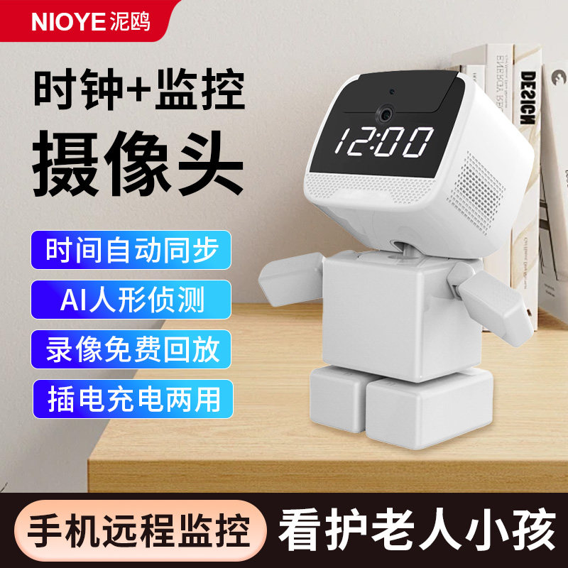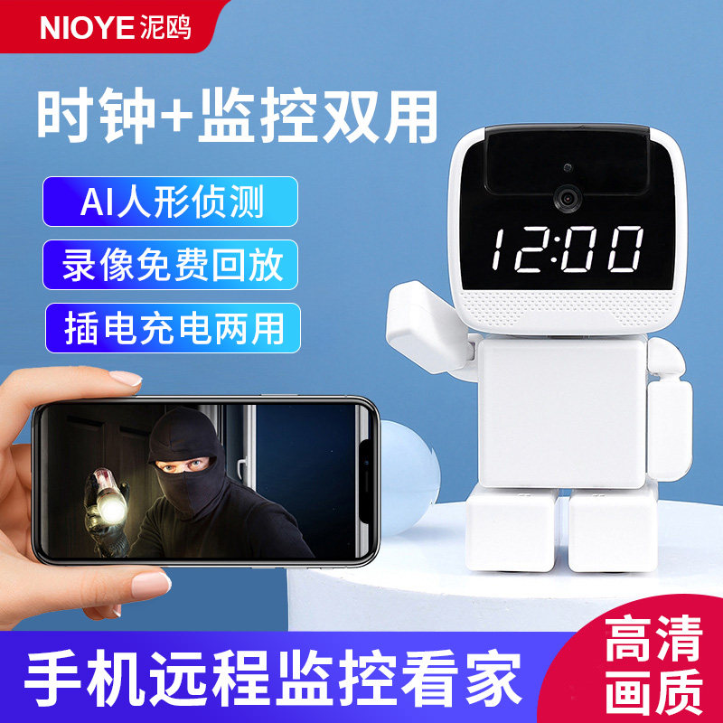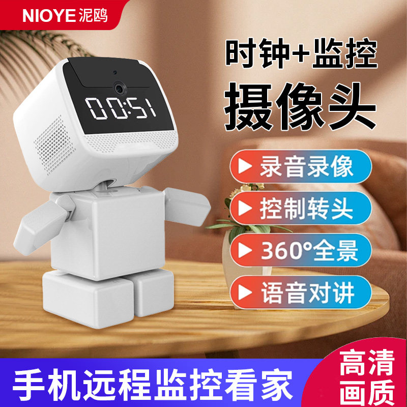📚 监控机器人摄像头家用时钟装饰摆件高清夜视无线360度全景摄影头