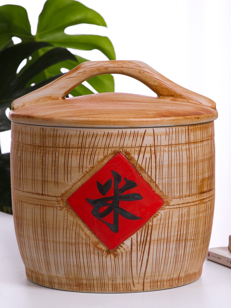 📚 景德镇家用陶瓷米缸密封面粉储米箱10斤20斤30斤装防潮防虫装米桶