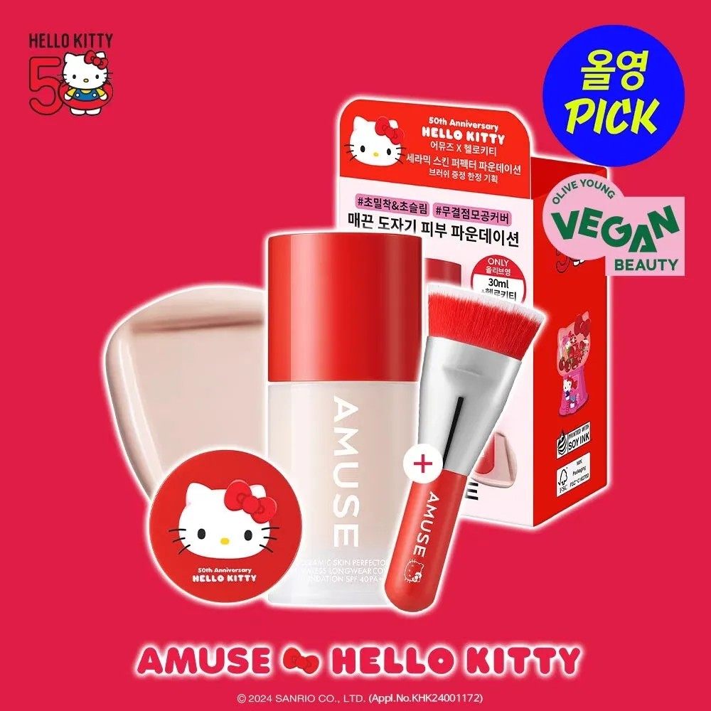 📚 韩国Amuse张元英代言50周年纪念版粉底液持久自然遮瑕带刷子正品