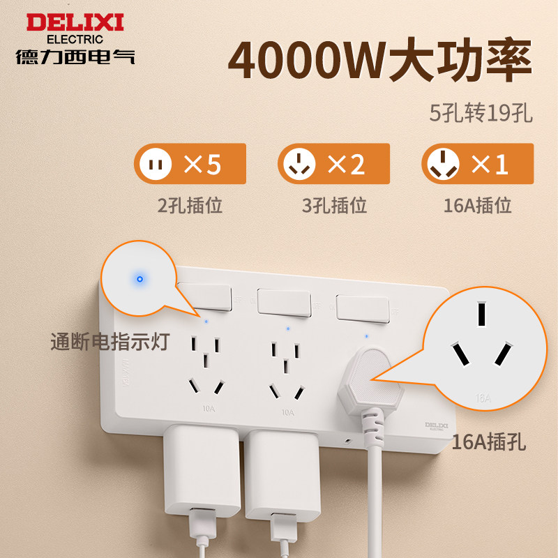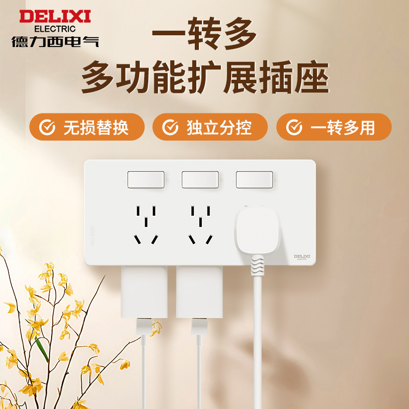 📚 德力西拓展插座86型墙上固定原位替换扩展插座面板多功能明装16a