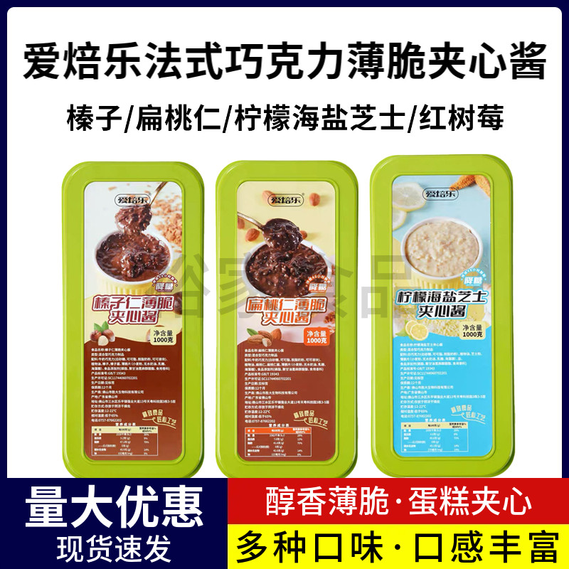 📚 爱焙乐法式榛子仁扁桃仁柠檬海盐芝士巧克力薄脆夹心酱蛋糕装饰馅