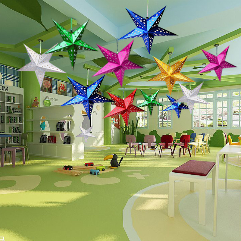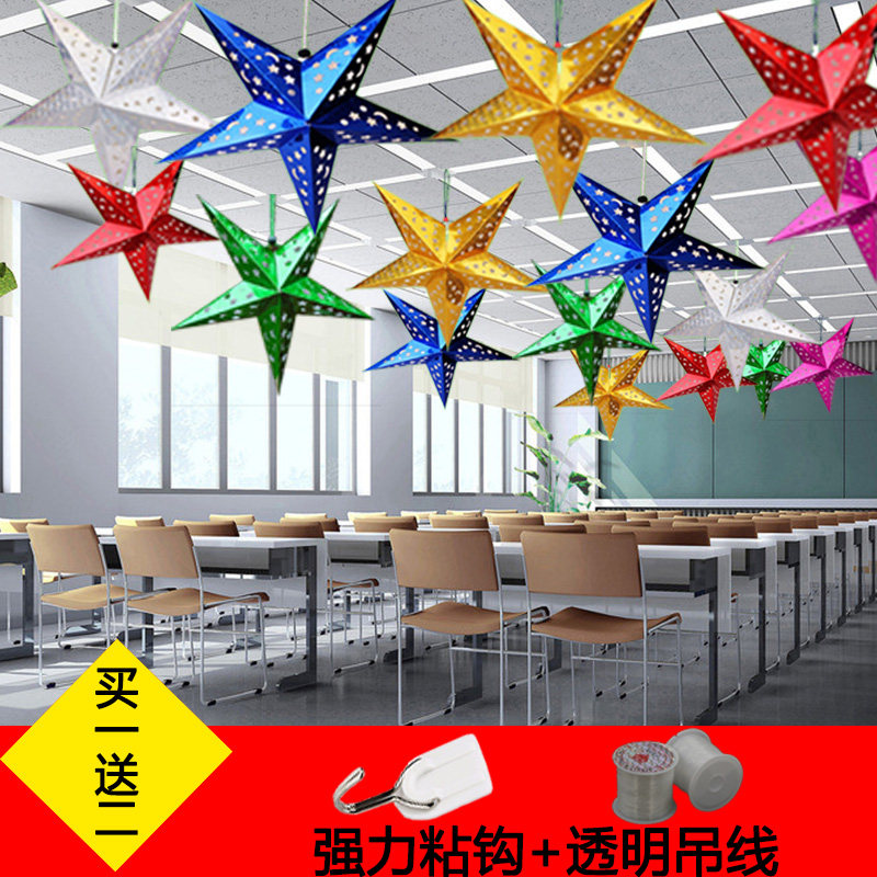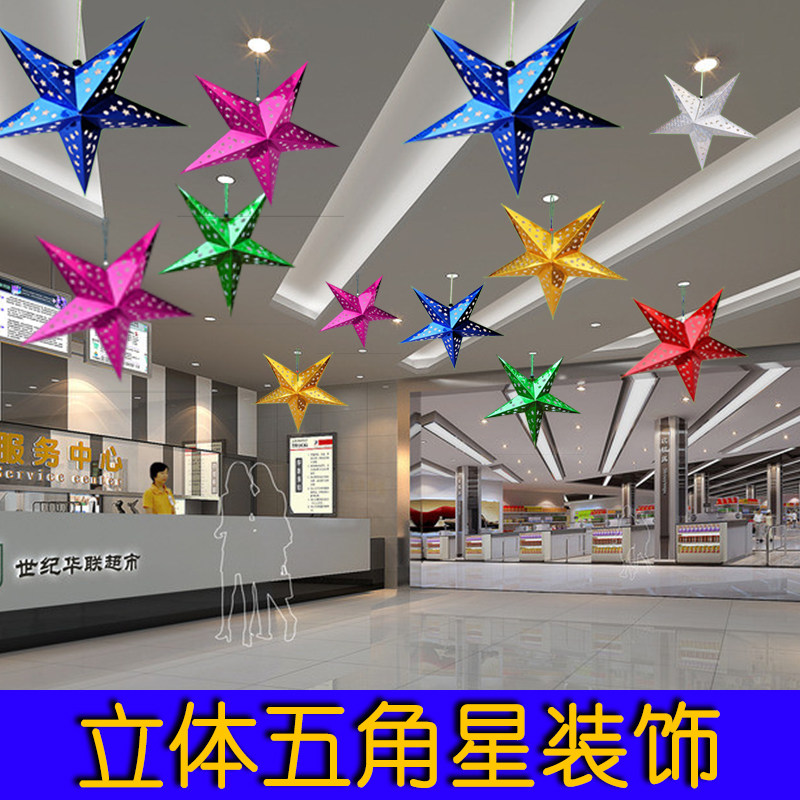 📚 新年节日装饰幼儿园立体五角星吊顶商场酒店挂件珠宝店铺开业挂饰