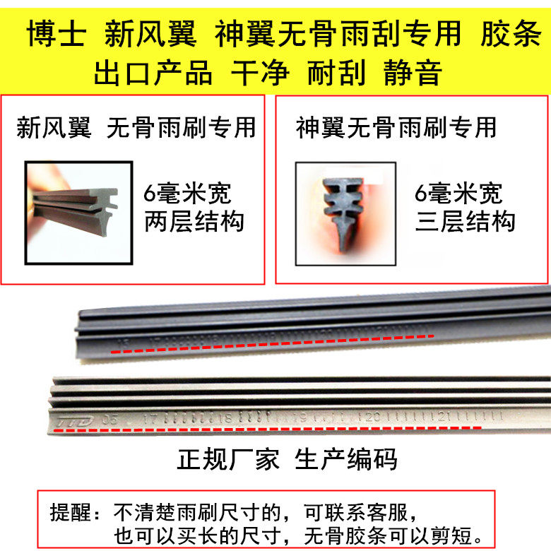 📚 适用博世新风翼 神翼无骨进口雨刮器雨刷片 博士火翼有骨雨刮胶条