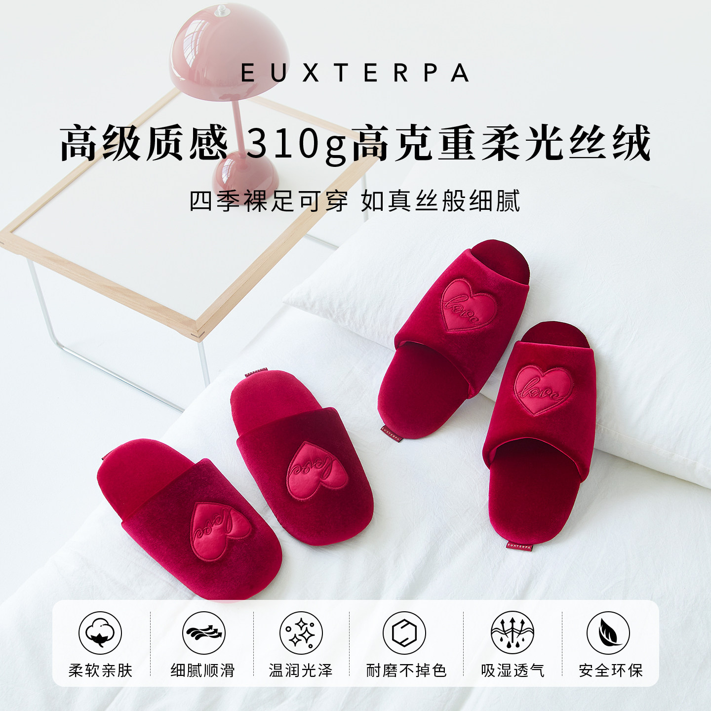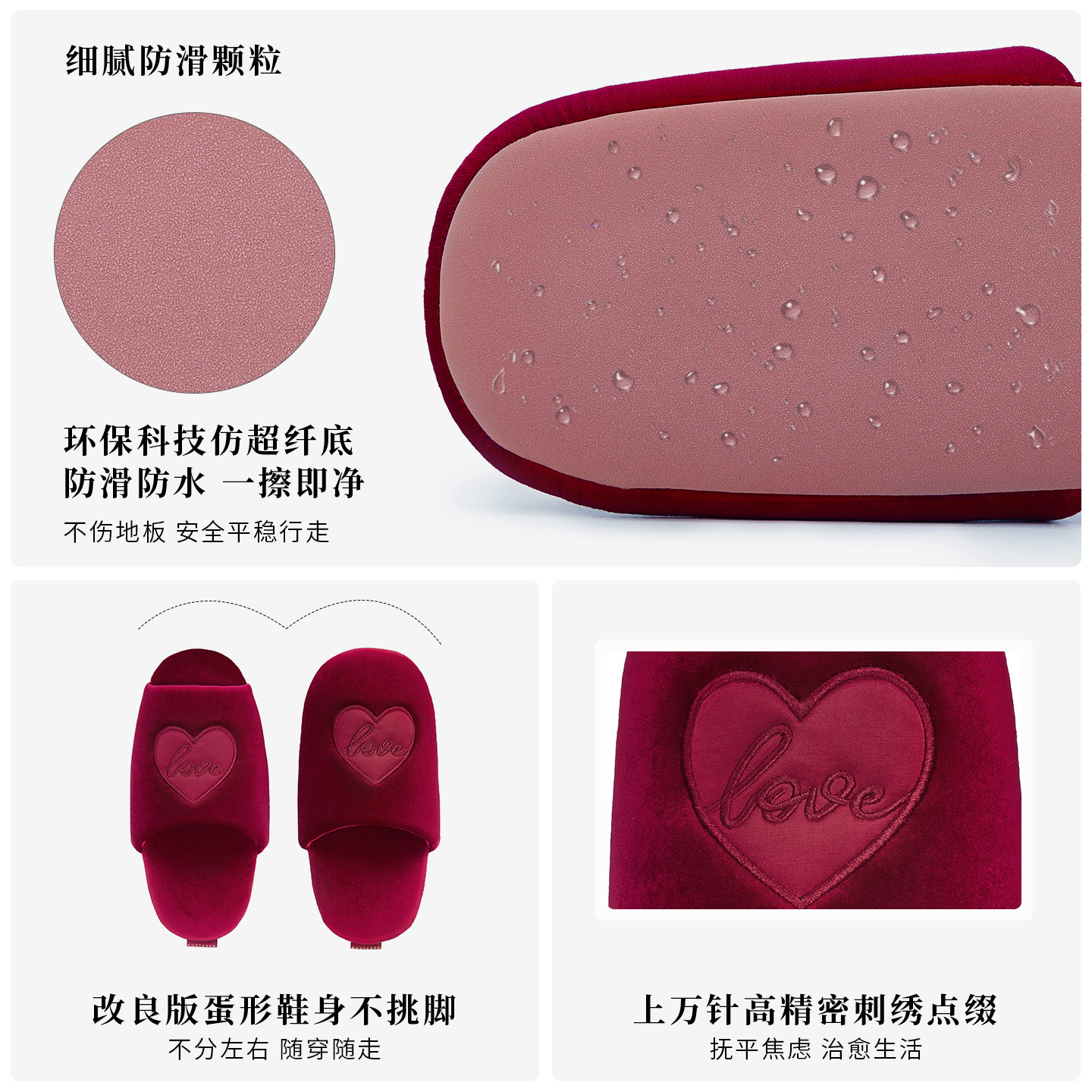 📚 EUXTERPA欧特帕结婚丝绒爱心棉拖鞋婚庆新年礼物拖鞋防滑静音软底