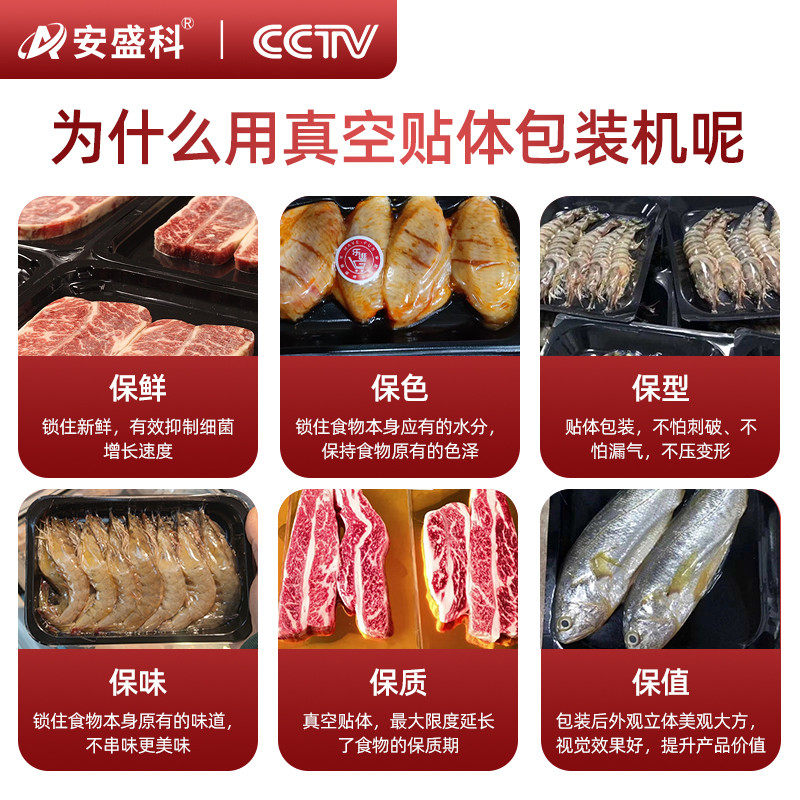 📚 安盛科真空贴体包装机商用牛排冷鲜鱼虾肉类食品保鲜打包封口机