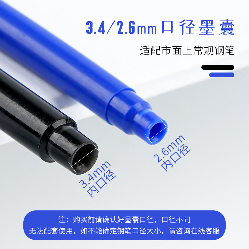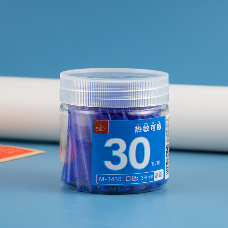 📚 30支桶装热敏可擦墨囊3.4mm三年级小学生可擦钢笔专用墨胆蓝黑墨蓝热可擦蓝可换黑色可檫晶蓝通用墨囊笔芯