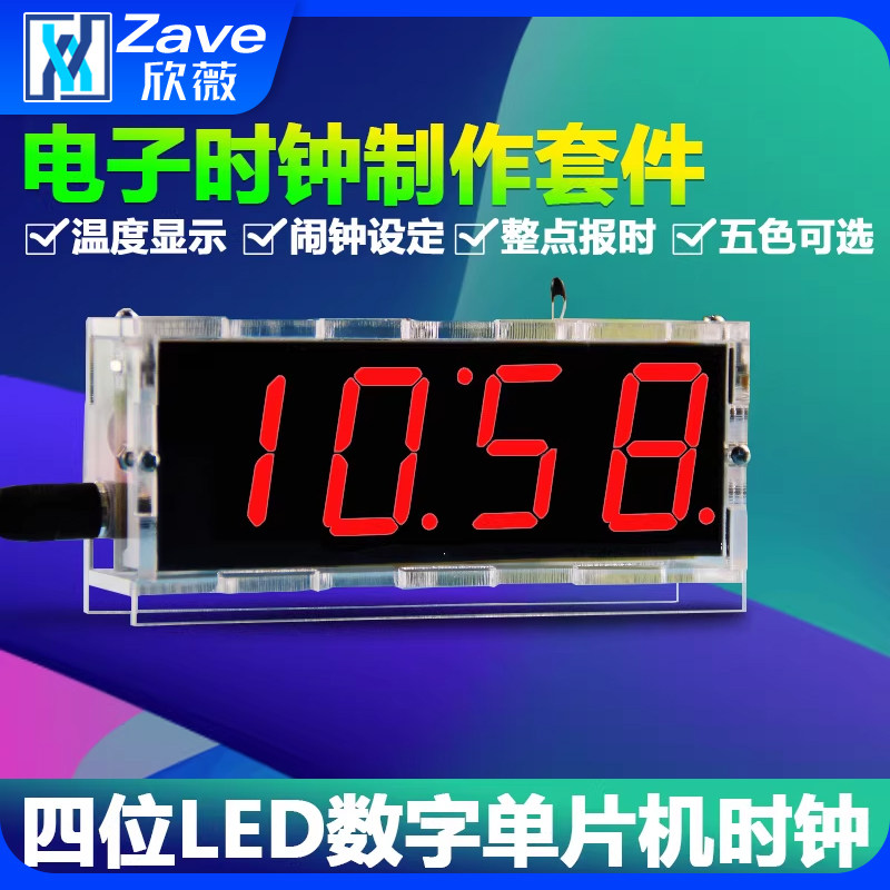 📚 ZAVE语音版数字电子时钟套件单片机LED播报电子钟DIY实训制作散件