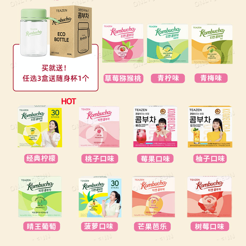 📚 TWICE代言小卡 TEAZEN零糖康普茶柠檬柚子菠萝蜜桃30条装