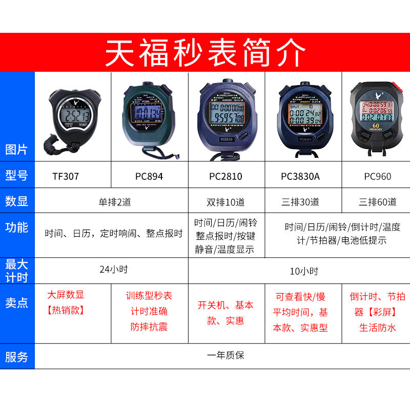 📚 天福电子秒表运动训练跑表专业跑步健身计时器比赛专用表学生田径