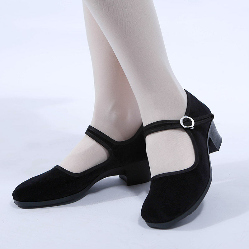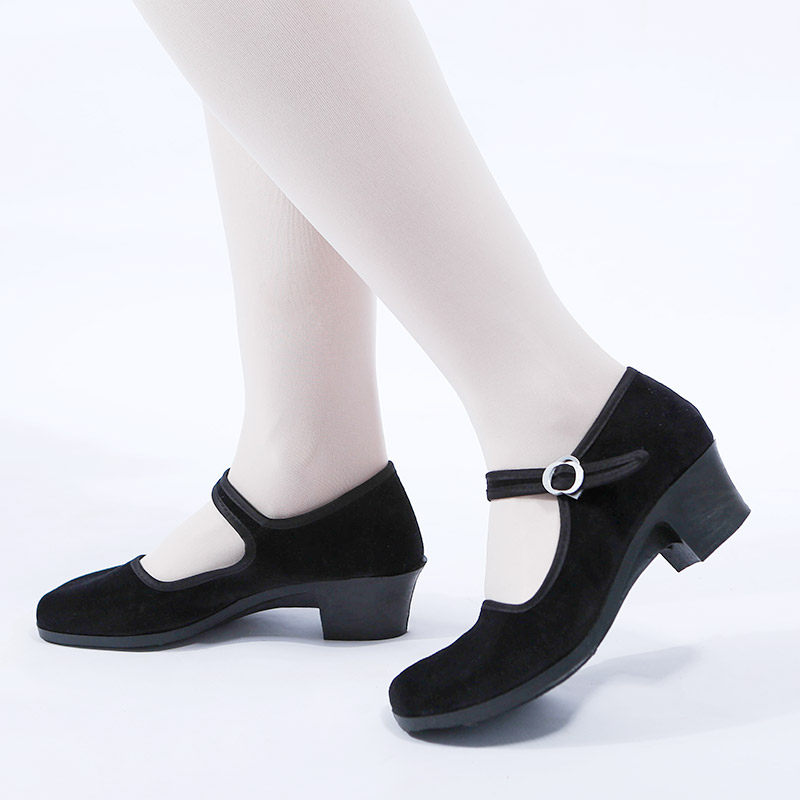 📚 速发族间秧歌民族鞋绒色鞋带跟式老北京黑布高跟藏民练功鞋