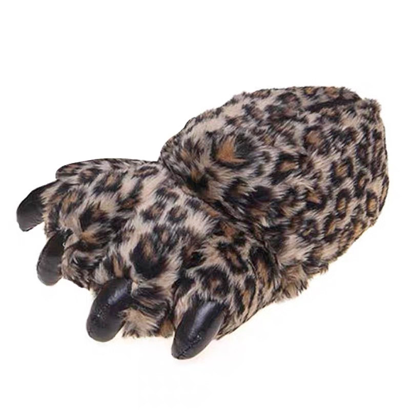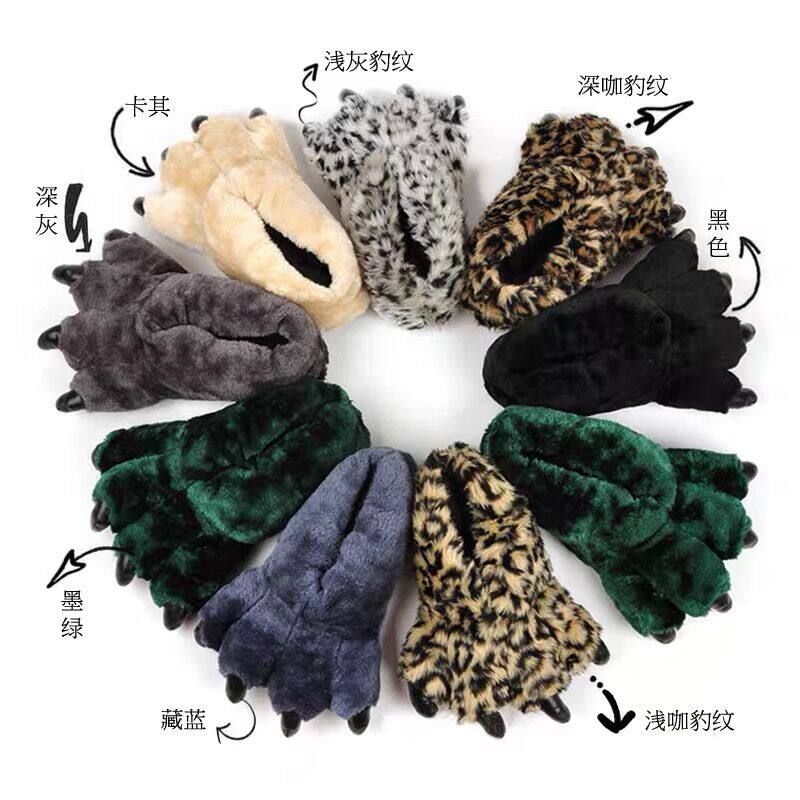 📚 搞怪动物棉拖鞋男女豹纹熊掌爪子居家防水室内保暖毛绒情侣胖胖鞋
