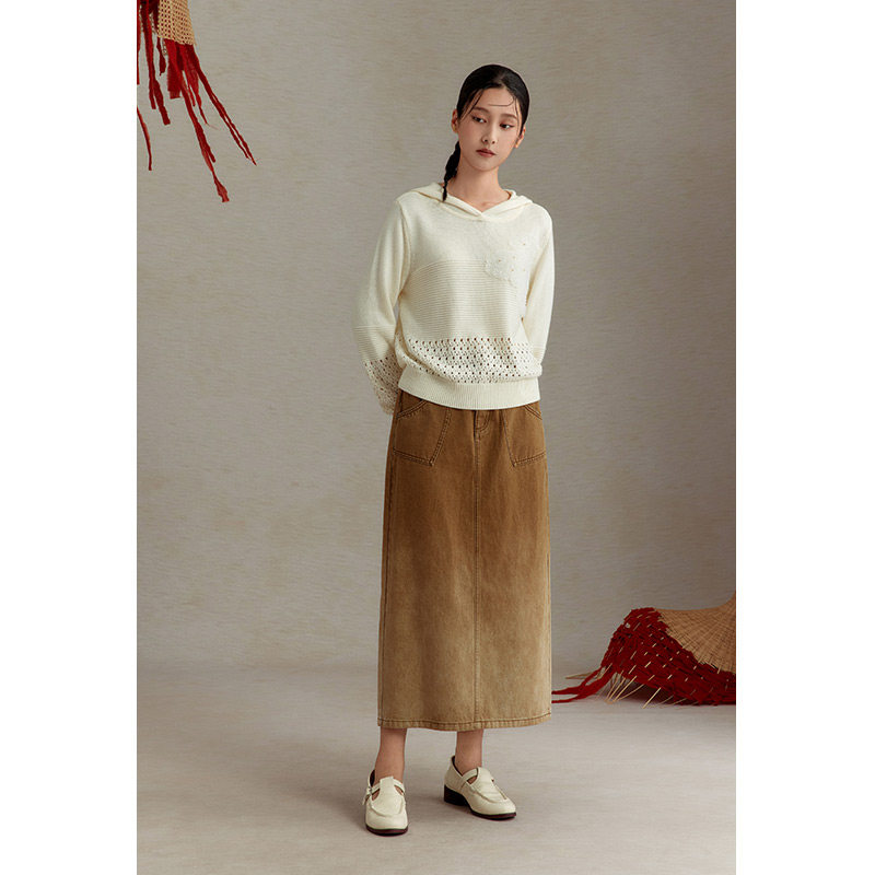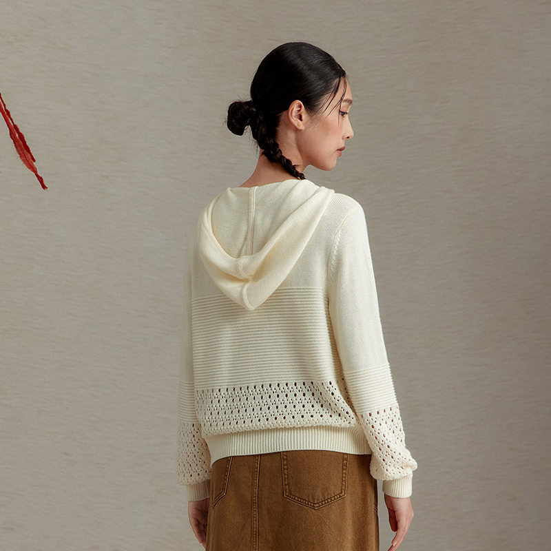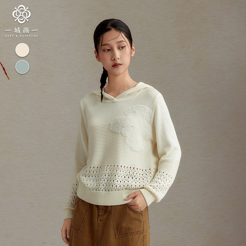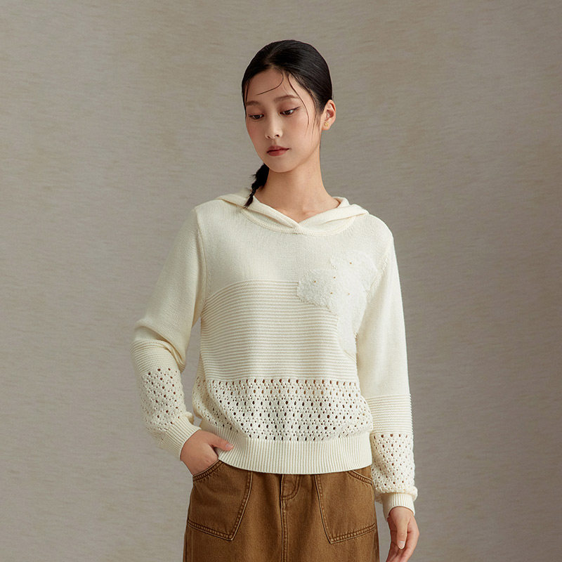 📚 一城画一新款慵懒风镂空时尚设计短款长袖套头毛衫女