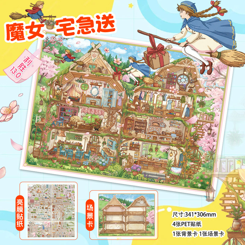 📚 格子间收纳系列造景贴纸利胜13.0系列花檐帽屋魔女宅急送高难度微缩场景手账帐diy拼贴画沉浸式解压女孩玩具
