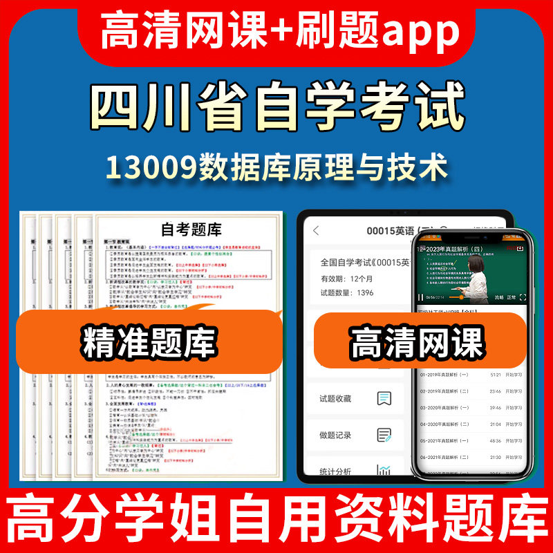 📚 四川省自学考试13009数据库原理与技术题库自考试卷历年真题教材书课件网课程讲义专科本科刷题软件电子版视频练习题源考试资料中
