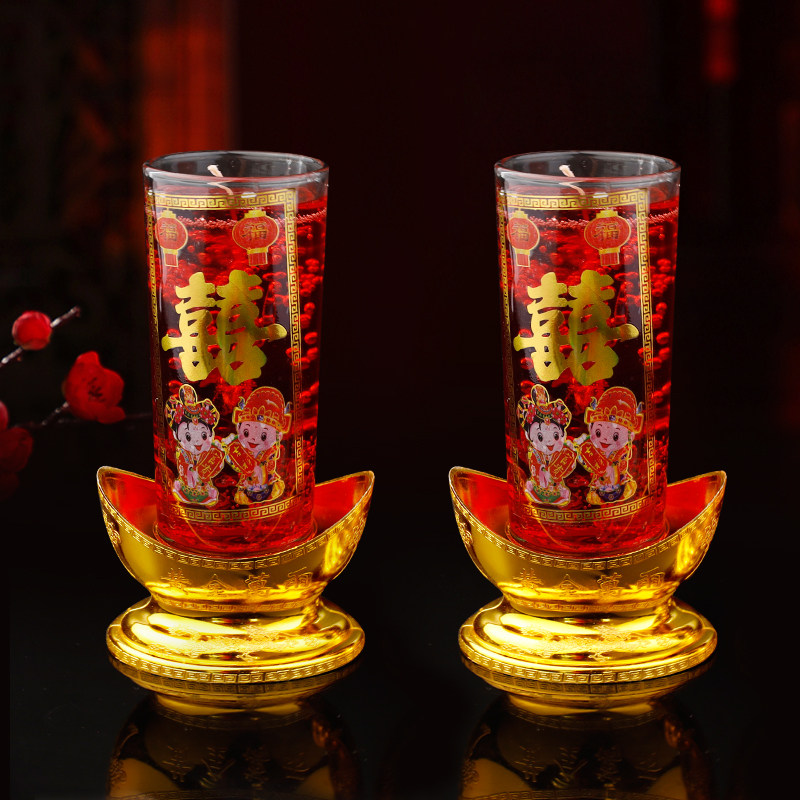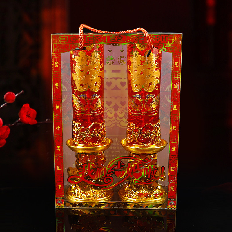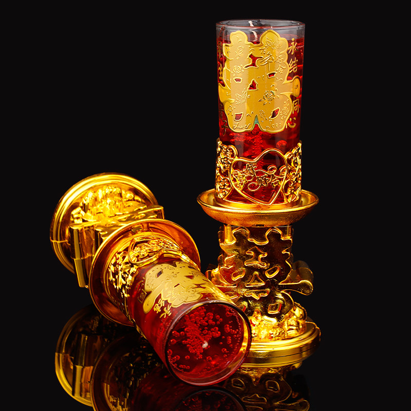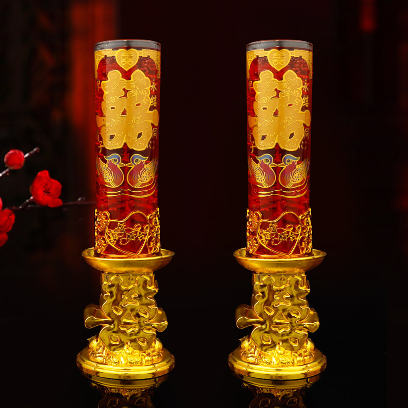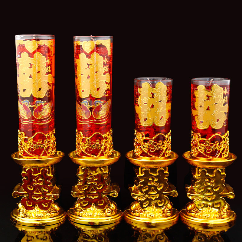 📚 防风玻璃杯水晶果冻龙凤拜堂喜烛结婚一对无烟婚礼喜字红蜡烛摆件