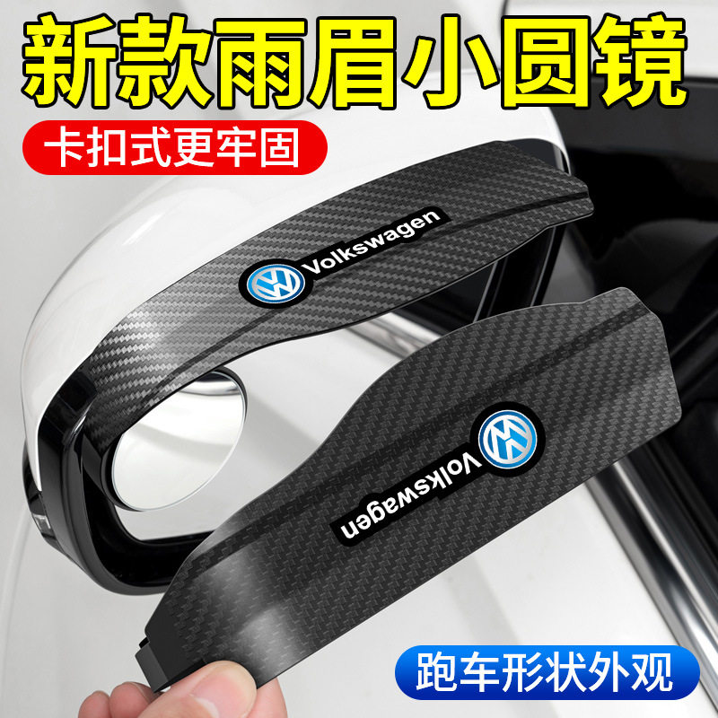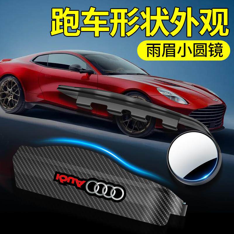📚 汽车后视镜雨眉小圆镜一体反光镜盲点镜倒车镜防雨水碳纤纹遮挡板