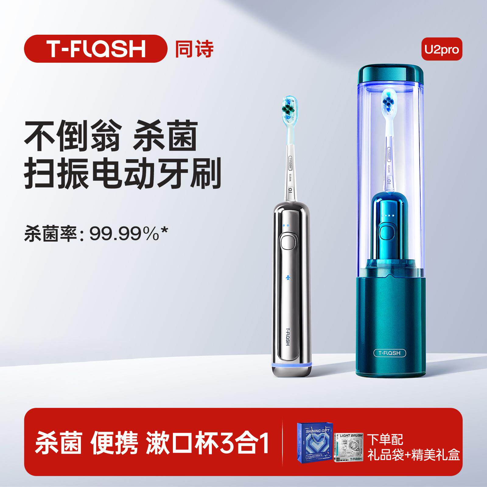 📚 同诗U2PRO电动牙刷杀菌消毒成人全自动扫振情侣专用软毛礼盒