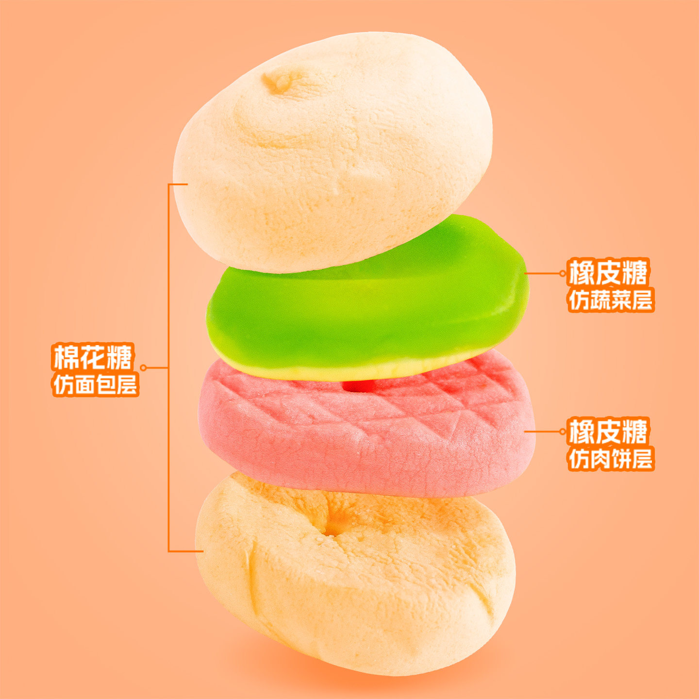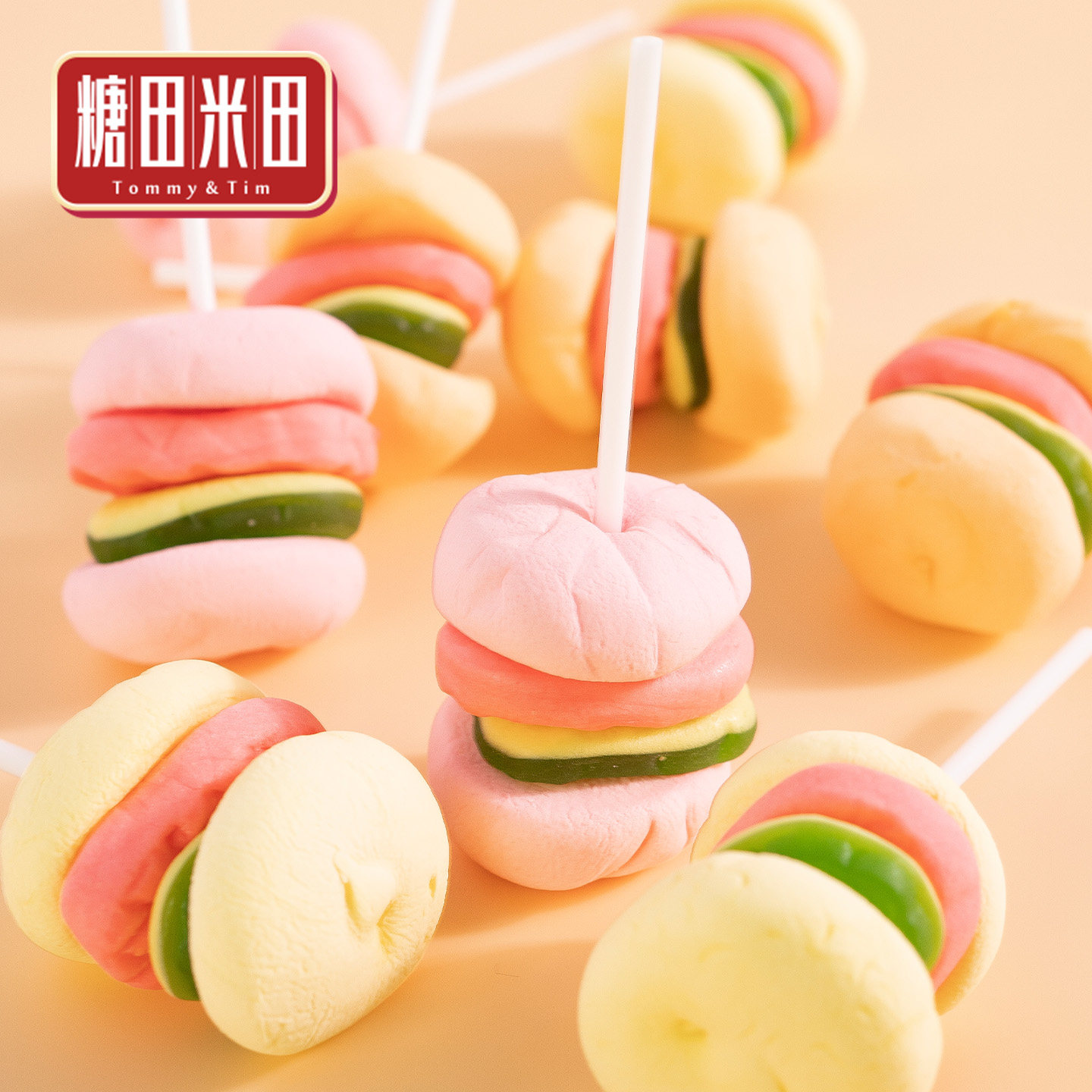 📚 糖田米田汉堡橡皮糖水果味qq软糖可爱汉堡形棒棒糖零食糖果棒