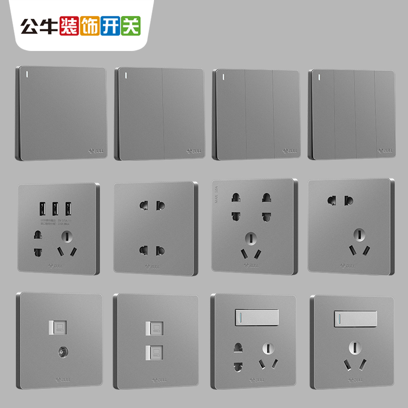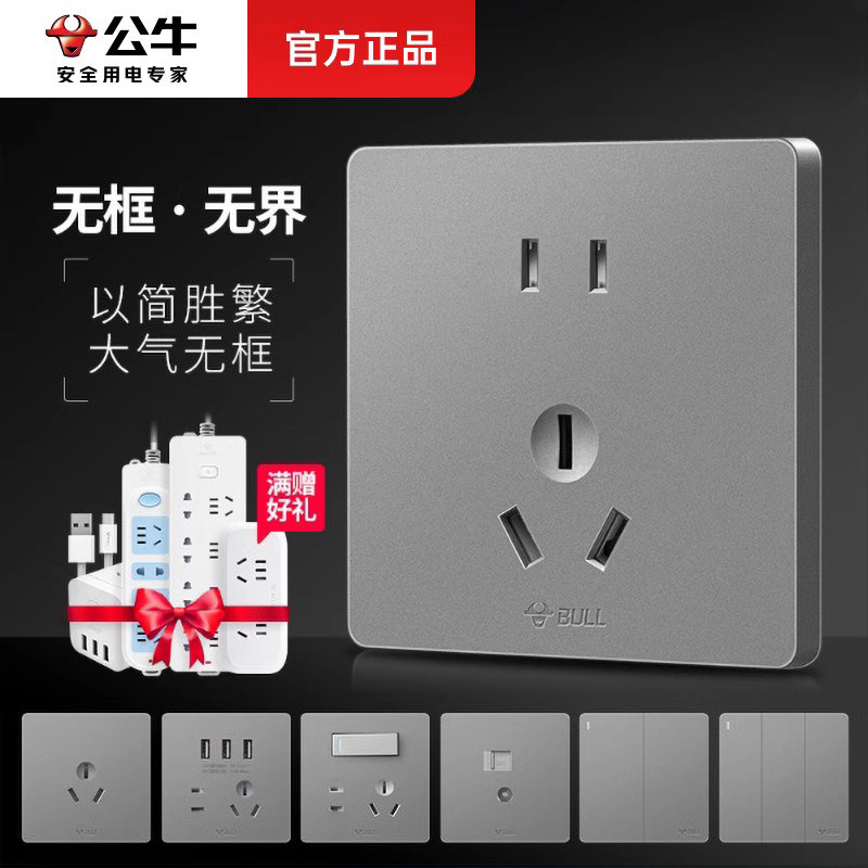 📚 公牛插座旗舰官网多孔面板家用空调16A五孔带开关正品g12星空灰色