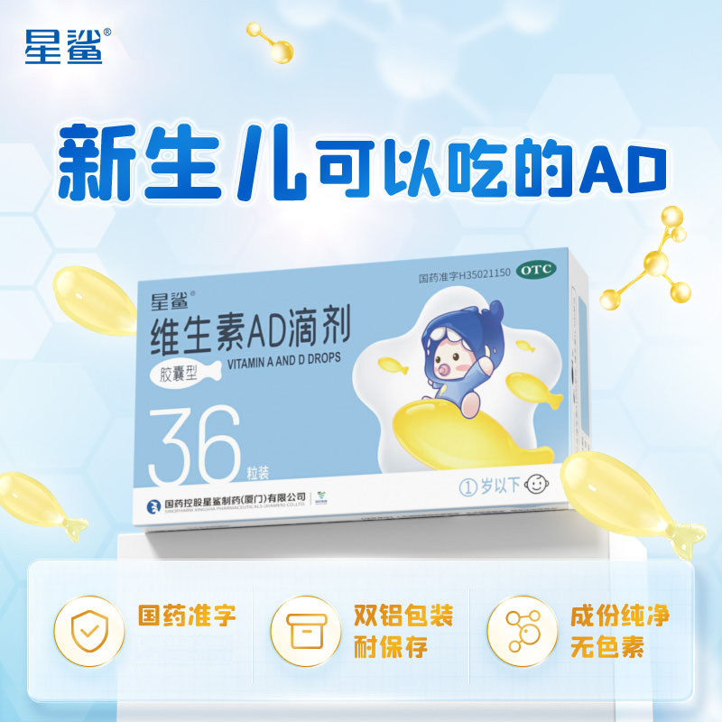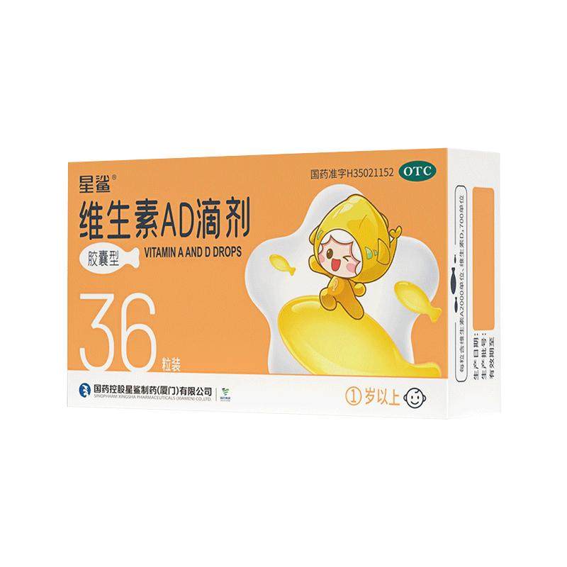 📚 星鲨 娃の福 维生素AD滴剂胶囊型36粒/盒 预防和治疗维生素AD缺乏