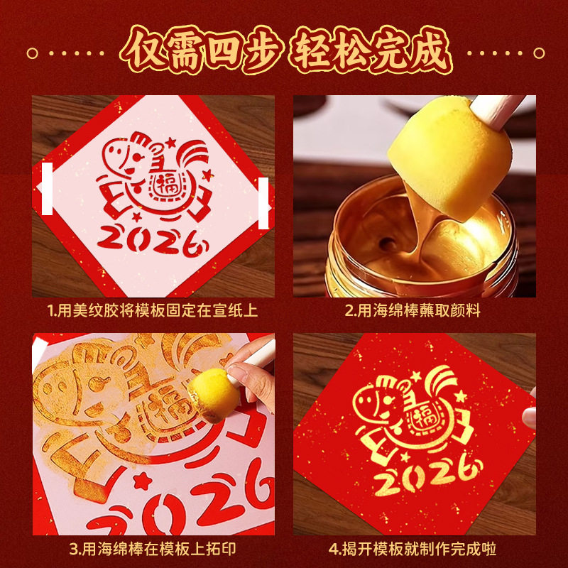 📚 新年福字拓印材料包2026马年工具套装diy手工新年幼儿园非遗镂空儿童学生大号涂鸦模版模具宣纸春节年画