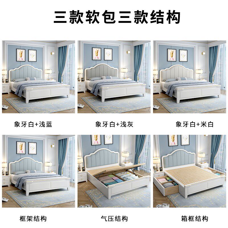 📚 掌上明珠美式实木床白色1.8米双人床现代简约1.5主卧轻奢公主奶油