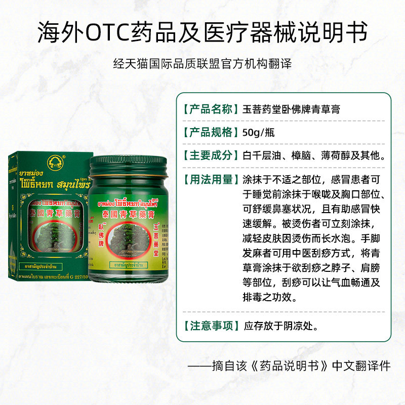📚 玉菩药堂泰国卧佛青草膏50g*1膏单盒装舒缓酸痛减轻鼻塞晕车蚊虫