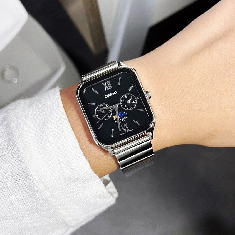 📚 casio卡西欧手表男女小方块月相正品防水学生考试石英表MTP-M305D