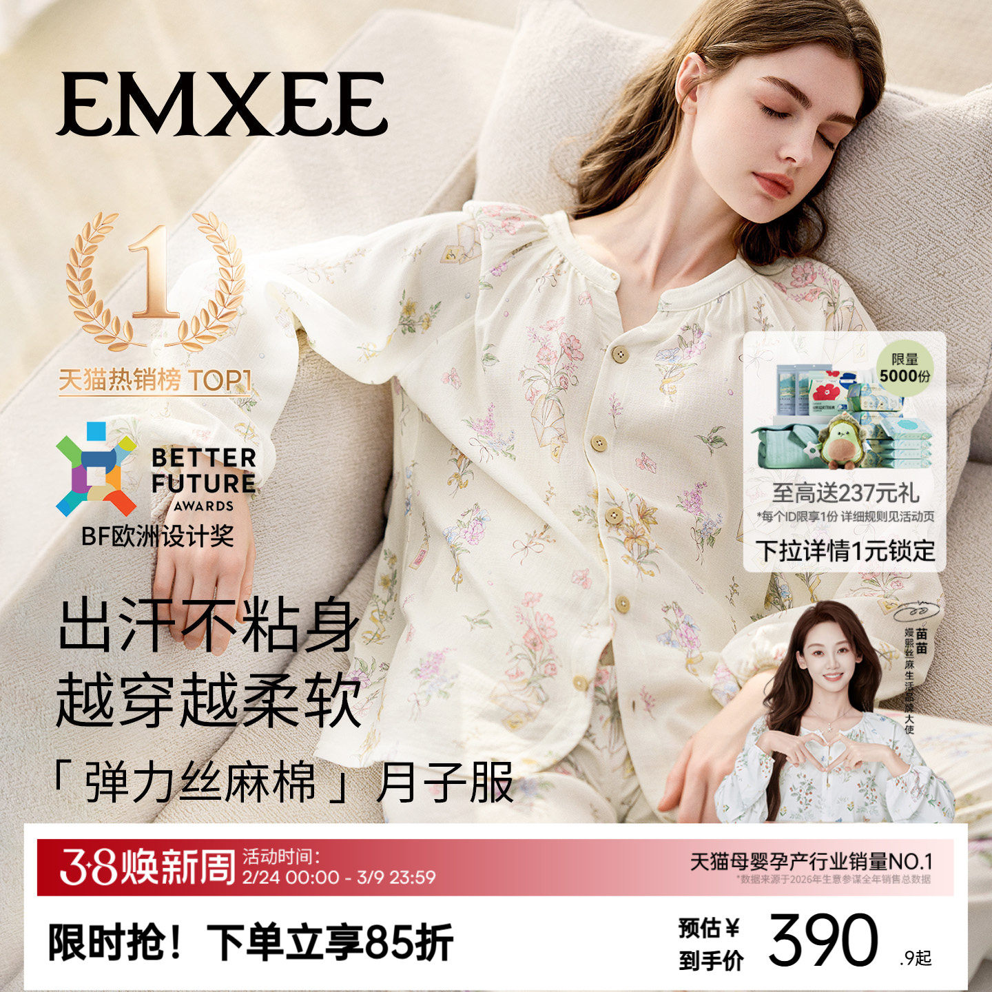 📚 嫚熙春夏孕妇哺乳吸汗睡衣产后弹力丝麻棉带胸垫月子服家居服套装