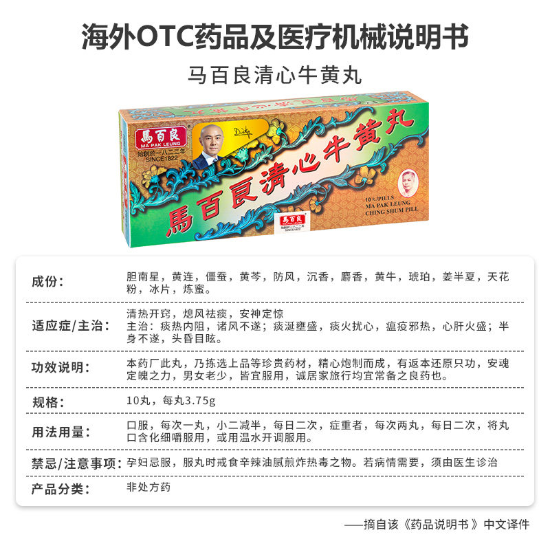 📚 (新2)香港马百良清心牛黄丸港版养血镇静安神解毒正品10丸/盒 P