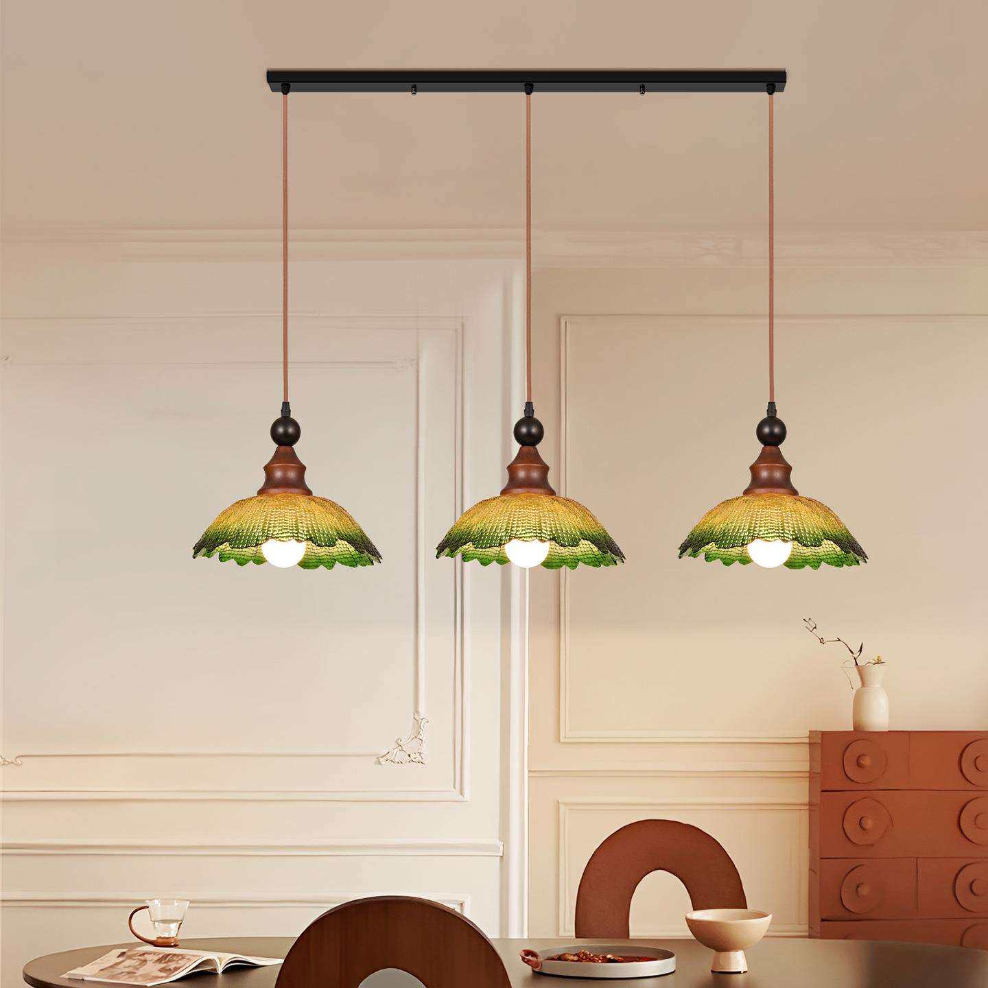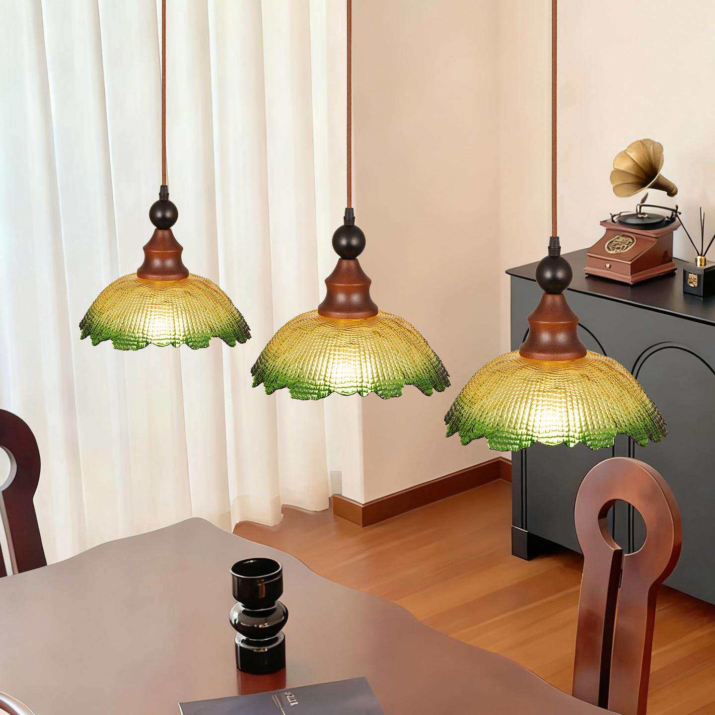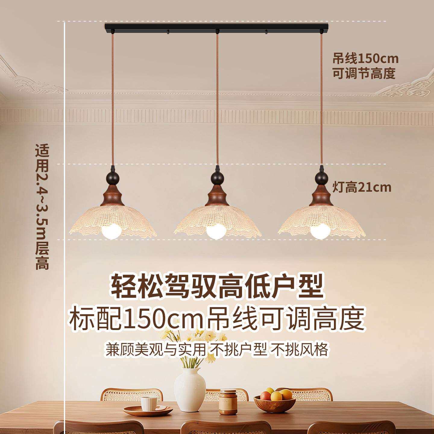 📚 餐厅吊灯复古玻璃餐桌饭厅灯吧台灯饰中古风实木三头餐厅吊灯L271