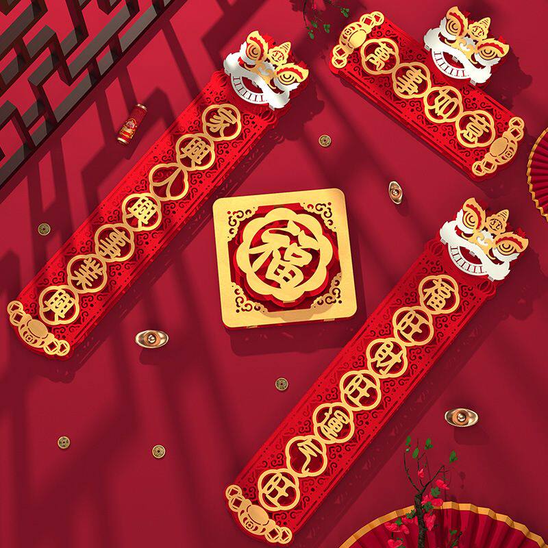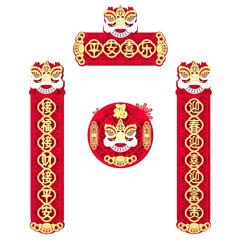 📚 龙年2024氛围装饰对联工厂大门防水中国风大门口炮仗春联财神横幅