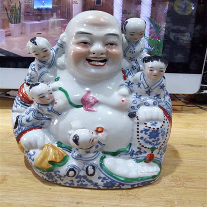 📚 五子登科景德镇陶瓷摆件五子佛笑口弥勒佛多子佛客厅摆设工艺品
