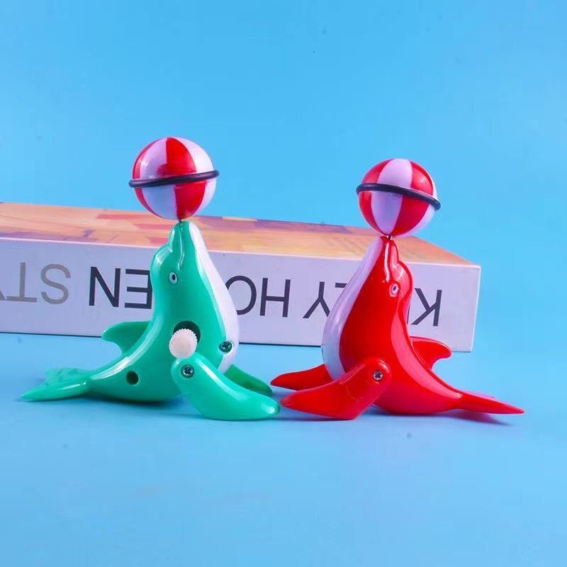 📚 杂技旋转海豚顶球上弦海狮玩具男女童上链发条玩具幼儿园奖品礼品
