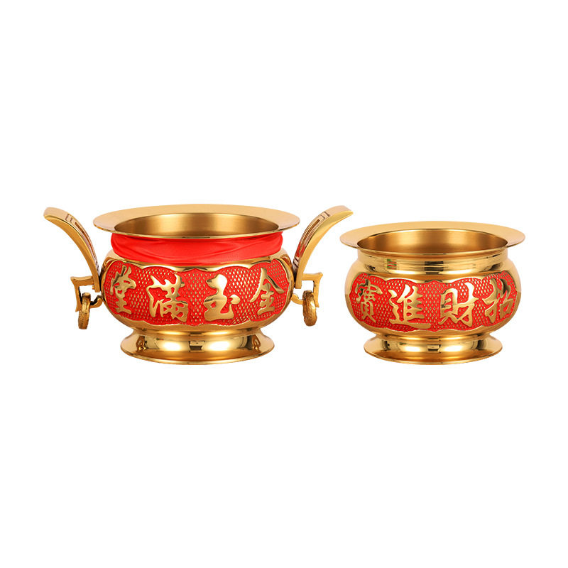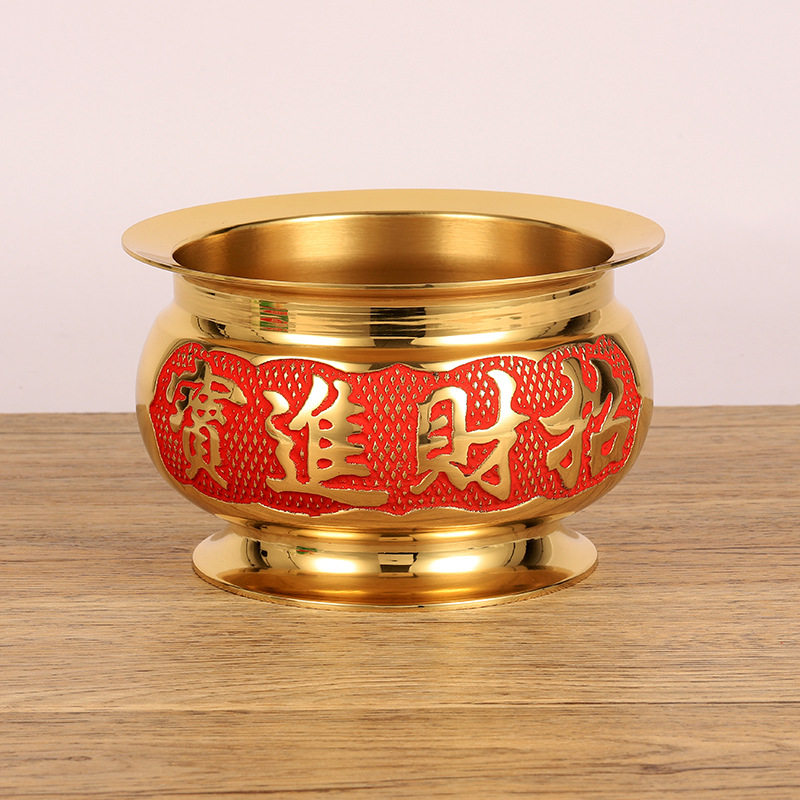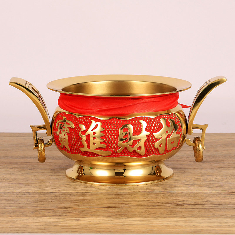 📚 纯黄铜带双耳香炉红油铜炉招财进宝金玉满堂家用室内佛堂礼佛供香