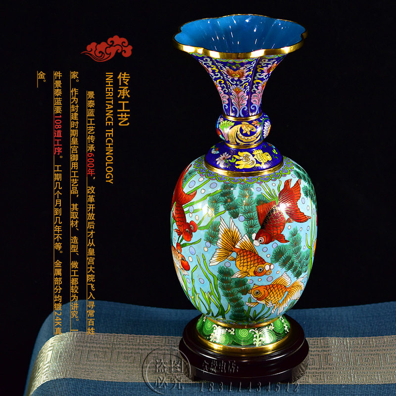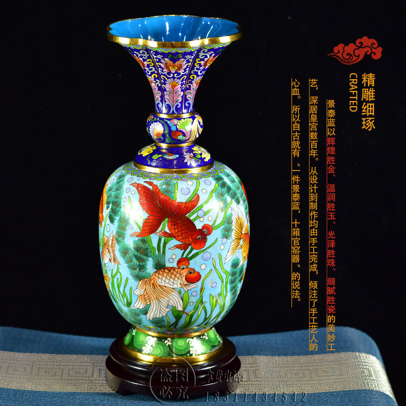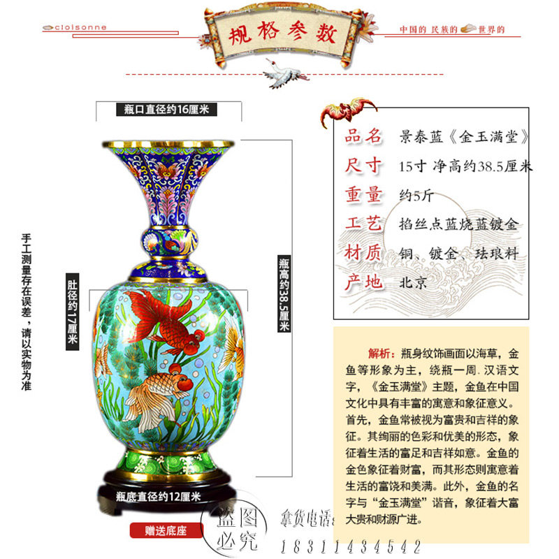 📚 北京珐琅景泰蓝花瓶15寸金玉满堂纯手工铜胎掐丝非遗摆件乔迁礼品