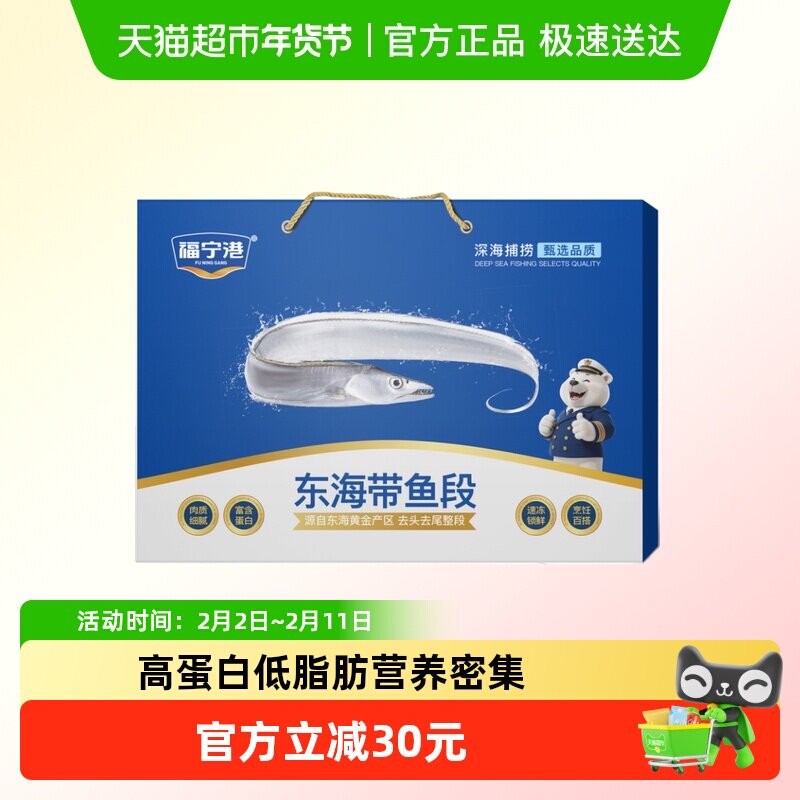 📚 福宁港东海冰鲜冷冻带鱼礼盒2kg新鲜捕捞去头去尾刀鱼海鲜大礼包