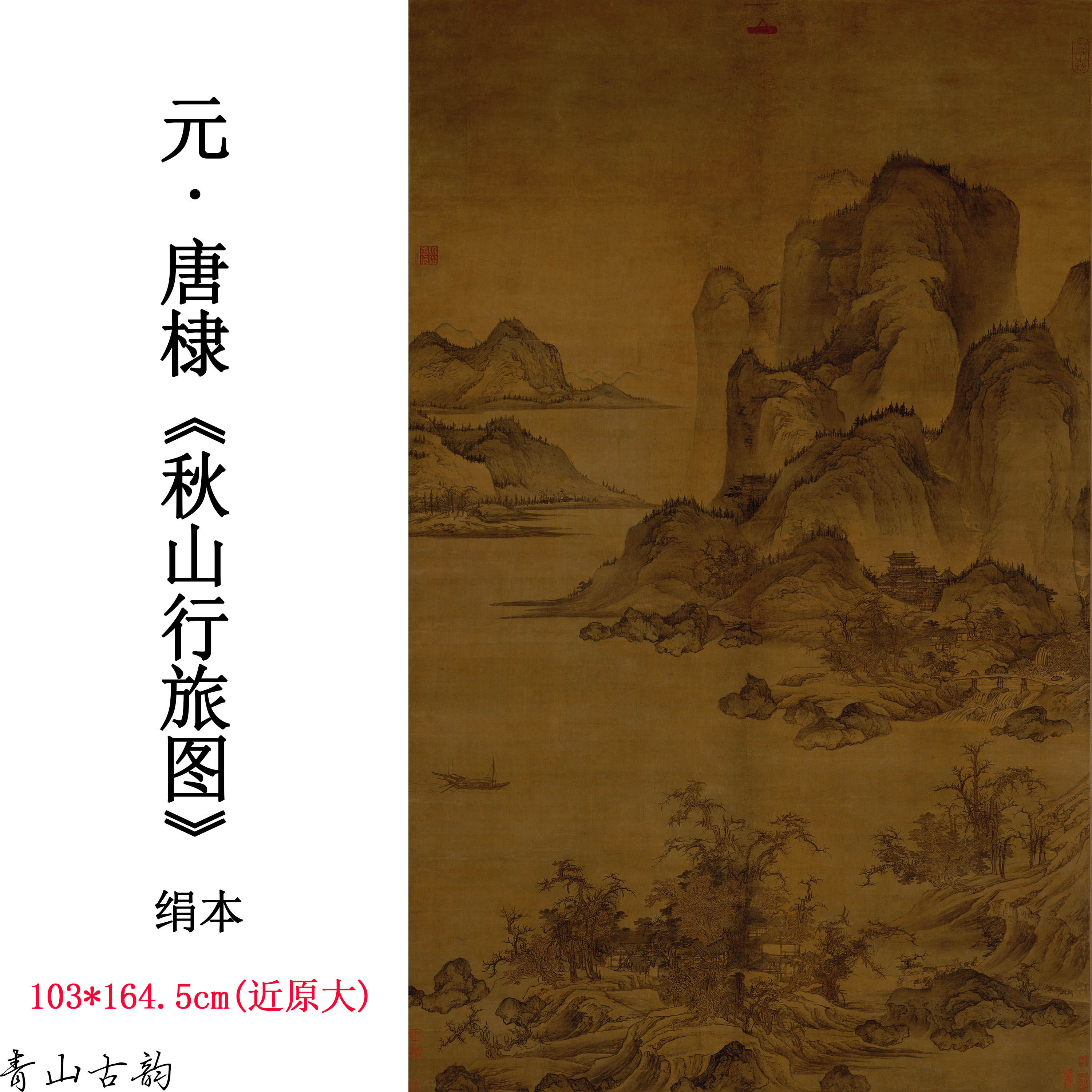 📚 新品元唐棣秋山行旅图绢本中国古代名字画超高清数字微喷临摹素材