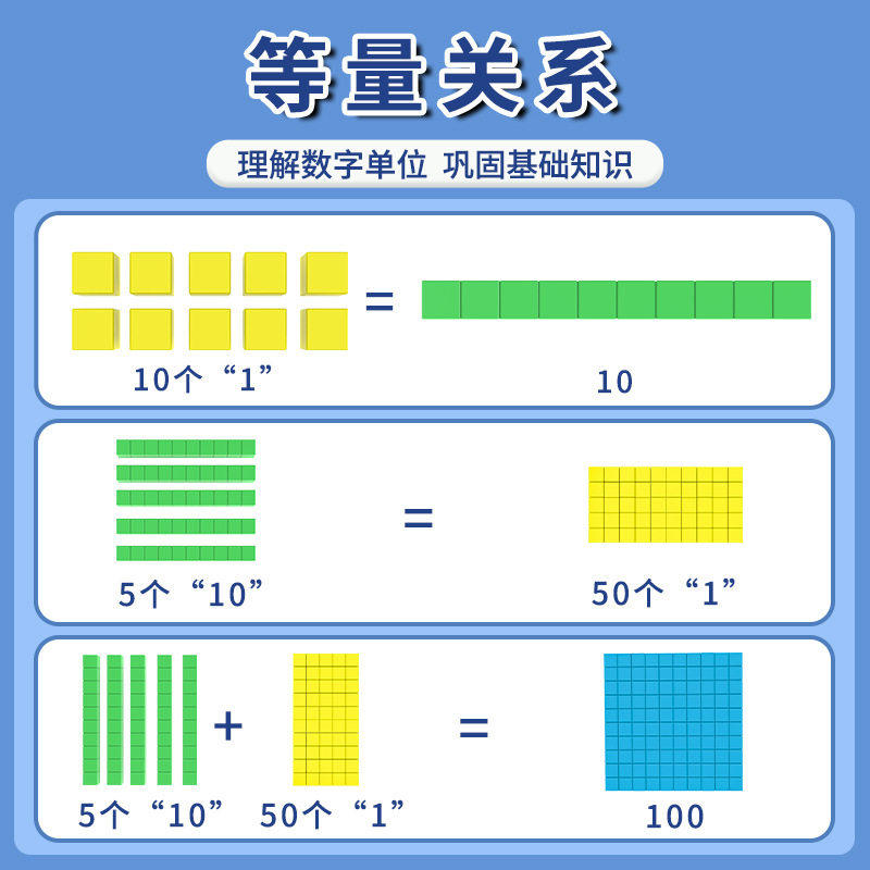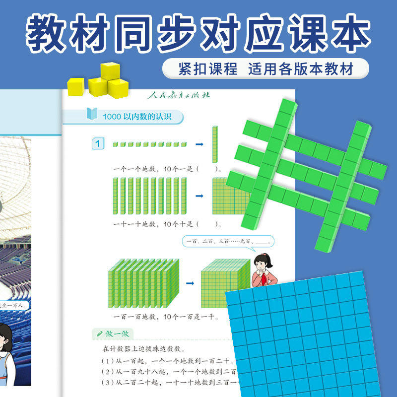 📚 三阶十进制数学教具小学千以内数的认识二年级认识大数进位小方块