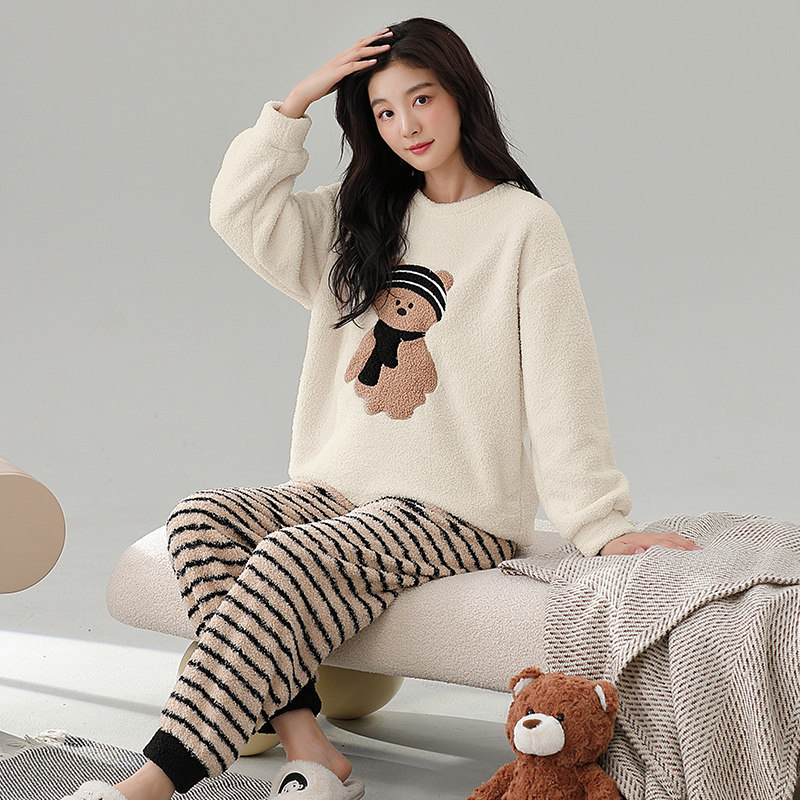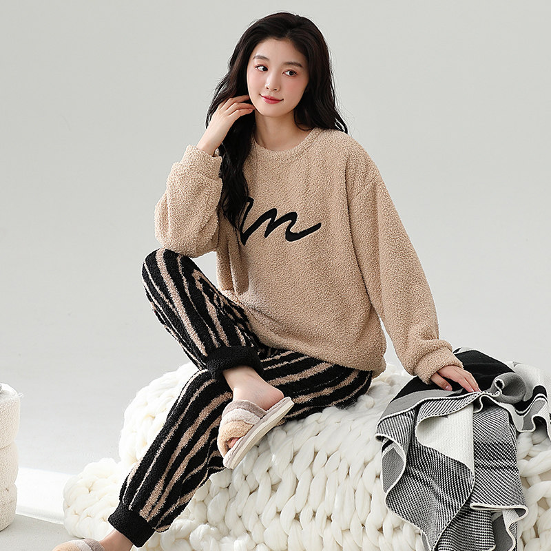 📚 【加长版】180CM高个子170-175冬季加厚款半边绒女士长袖睡衣套装