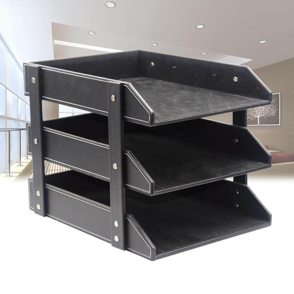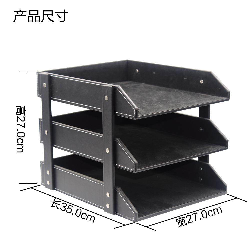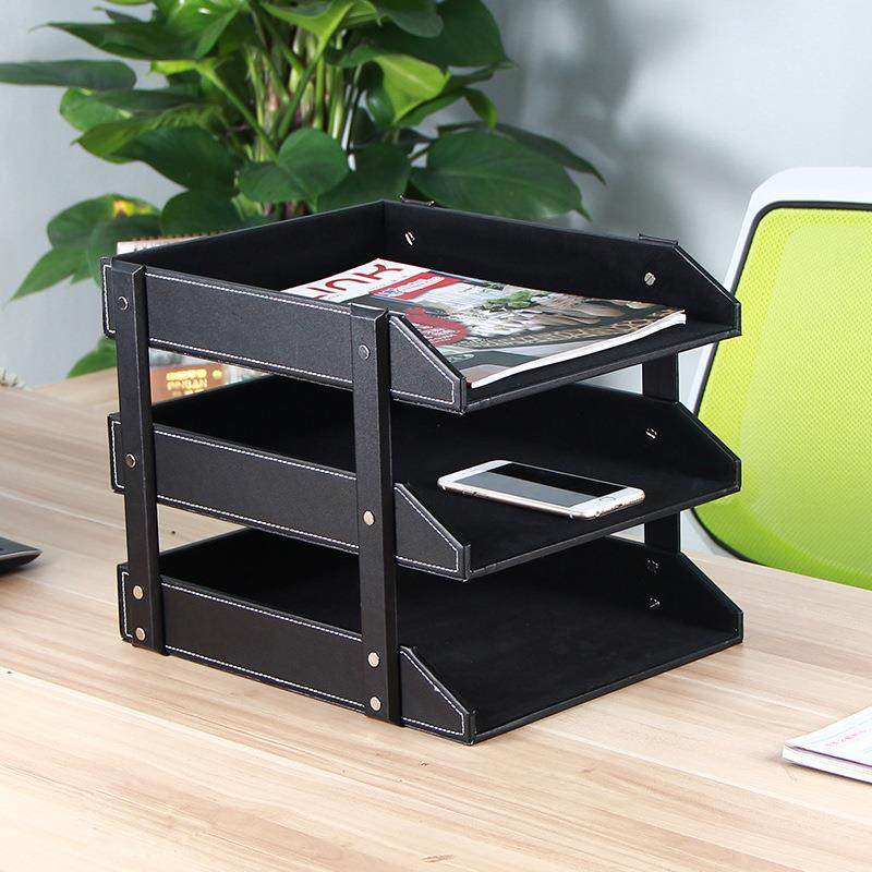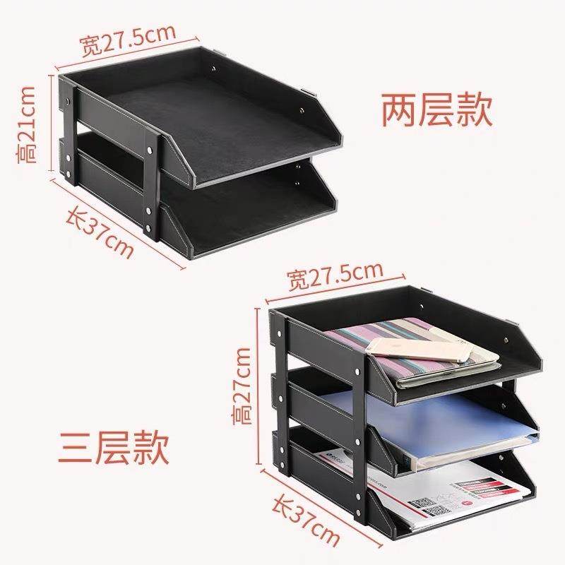 📚 商务办公用品文件架皮革三层文件盘多功能桌面资料架文件收纳盘