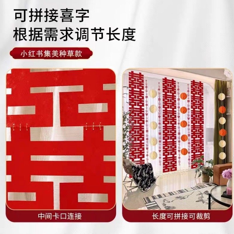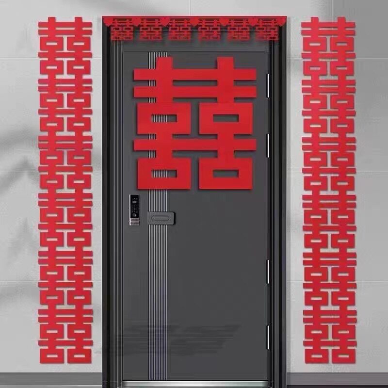 📚 爆款六连喜结婚装饰长条喜字贴婚房布置客厅卧室背景墙六联喜字