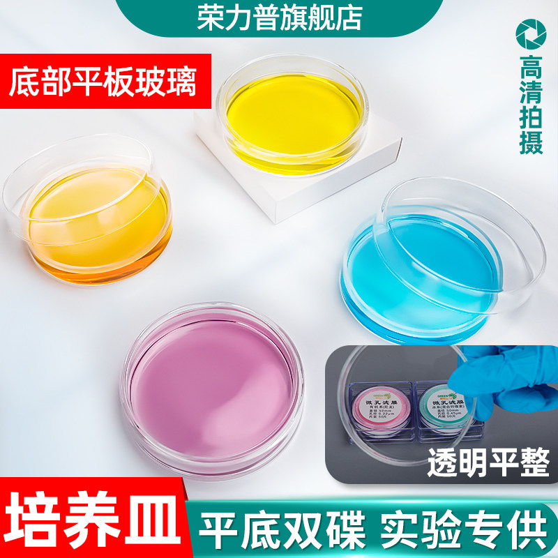 📚 实验室玻璃培养皿平底双碟定量培养皿93mm抗生素效价测定专用无菌细菌弧菌耐高温高硼硅玻璃带盖大培养皿