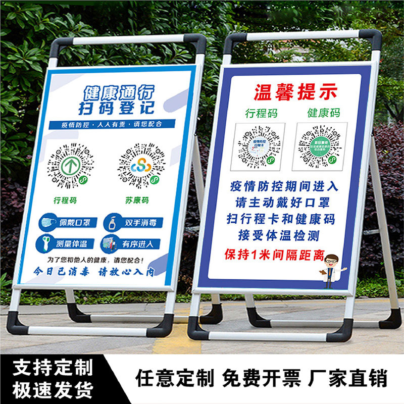 📚 疫情防控提示牌防疫标识牌请出示健康码行程码警示牌二维码展示牌
