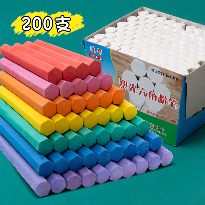 📚 400支白色粉笔无尘儿童黑板家用彩色粉笔套装教师专用按动式六角粉笔套学校学生黑板报画画教学环保粉笔