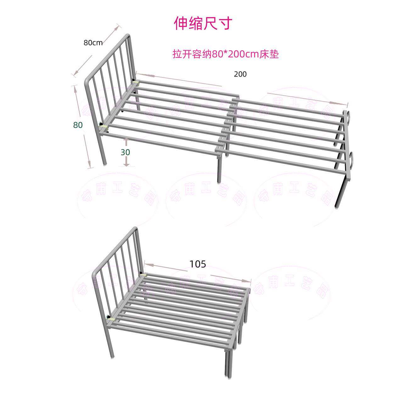 📚 抽拉式铁艺沙发单人床架,无扶手有靠背的,80cm宽x200cm长可拆装