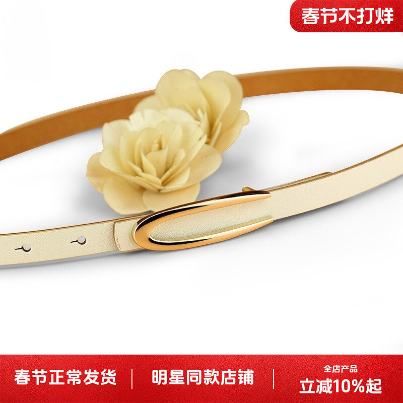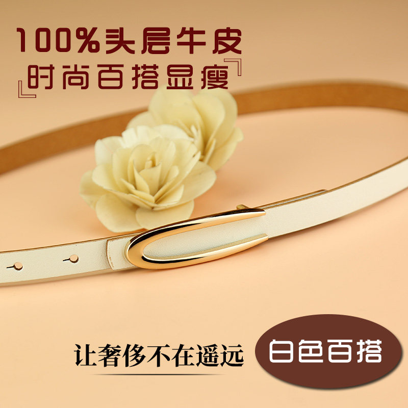 📚 皮带女真皮头层牛皮白色简约百搭休闲时尚腰带细韩国装饰配裙裤带