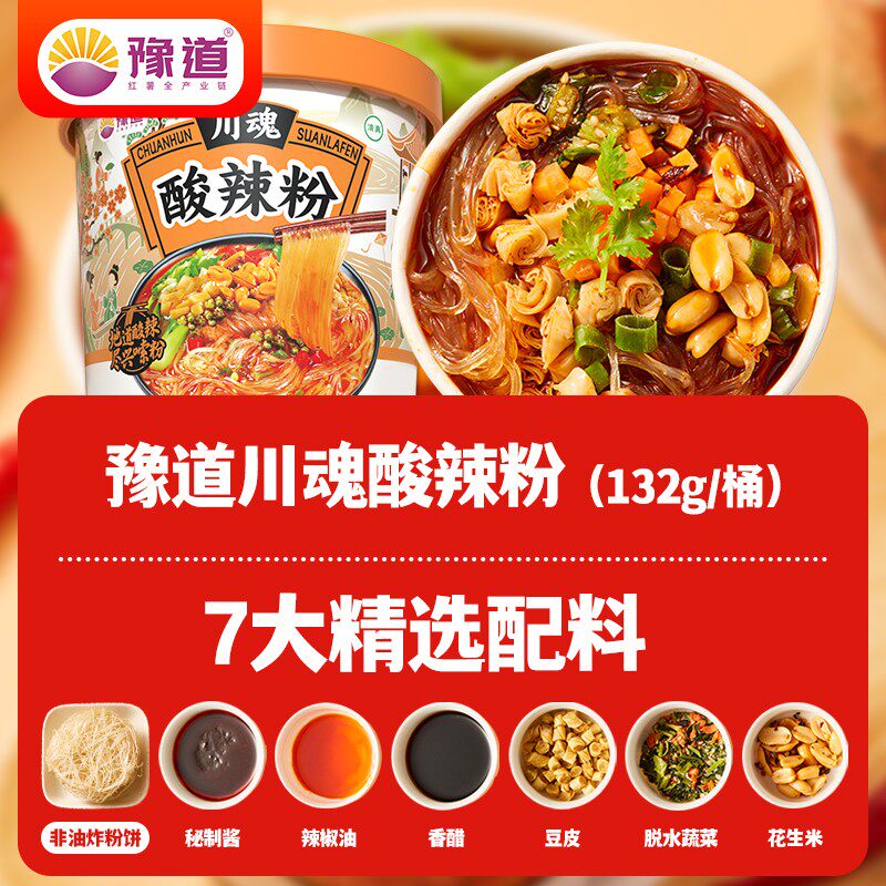 📚 豫道川魂酸辣粉132g*6桶装冲泡重庆风味宵夜网红速食