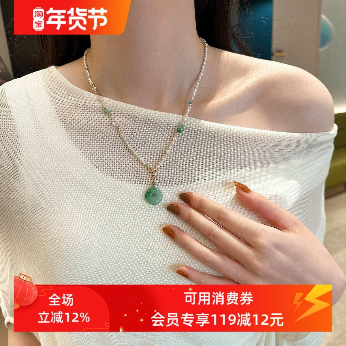 💎赛赛莉安原创设计天然翡翠巴洛克淡水珍珠锁骨链,轻奢新宠,券后价227.9!